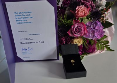 Da strahlte unsere Jubilarin Frau Petra Keiler und freute sich über das „Goldene Kronenkreuz“, welches
